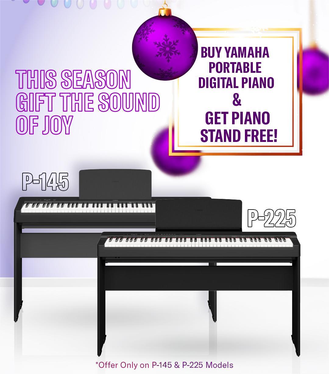 A - This festive season, Yamaha is offering a free piano stand with the purchase of select Yamaha Portable Digital Pianos. Customers who buy eligible models receive a matching Yamaha stand at no additional cost, making it a complete, ready-to-play setup.
