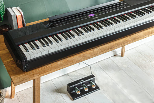 Check DeliveryAn optional pedal set for your digital piano, offering the three-pedal configuration (damper, sostenuto and soft) needed for authentic piano performance.