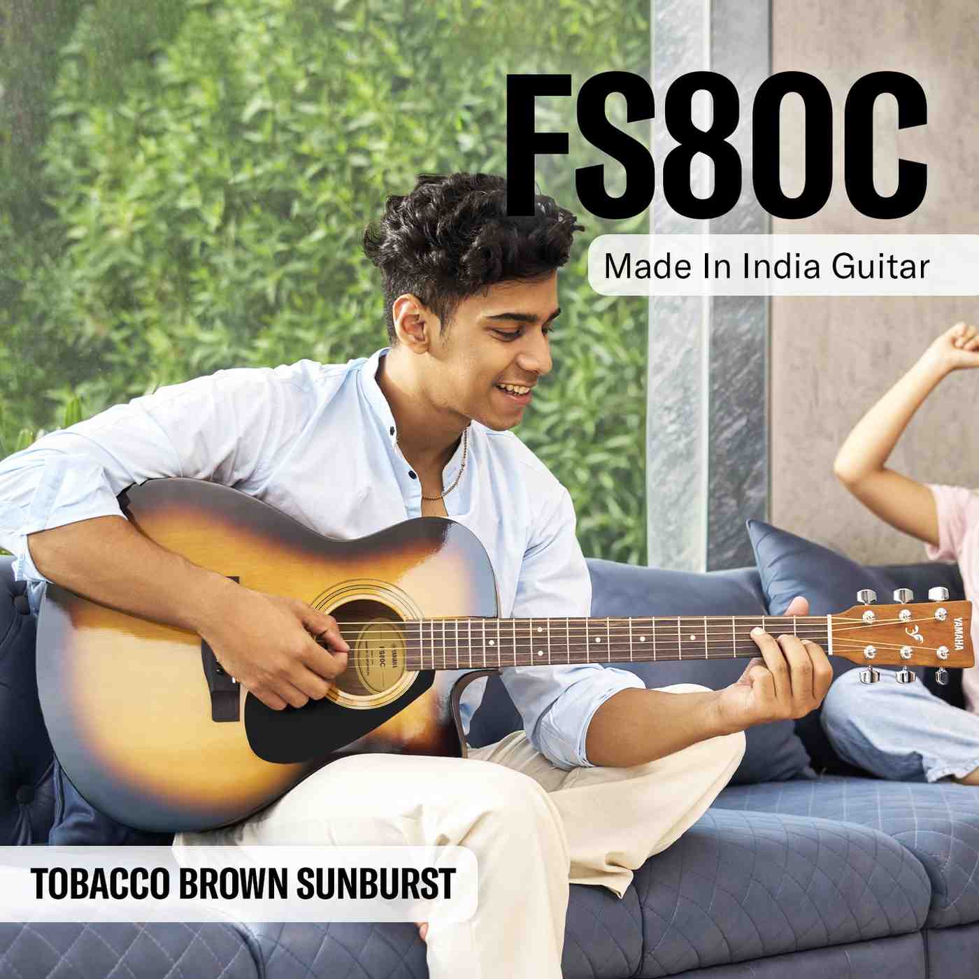 Yamaha FS80C is a made-in-India acoustic guitar. It belongs to the FS series known for its compact and comfortable body shape, making it a good choice for players who prefer a smaller guitar with a balanced tone.