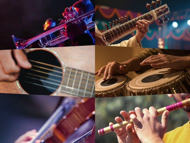 Practice a variety of songs step by step, from Raga scales and Geetam to Western classics.