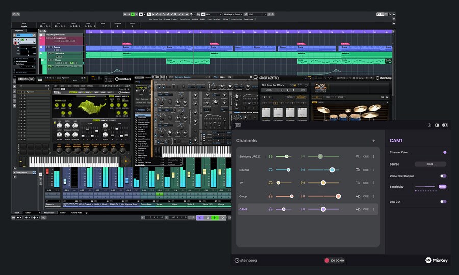 Steinberg Plus adds a wide range of sounds, effects, and virtual instruments to your Cubase AI DAW, giving you more tools to shape your sound. And with MixKey, our intuitive standalone software mixer, setting up clean audio routing and high-quality streaming on your PC is easier than ever.